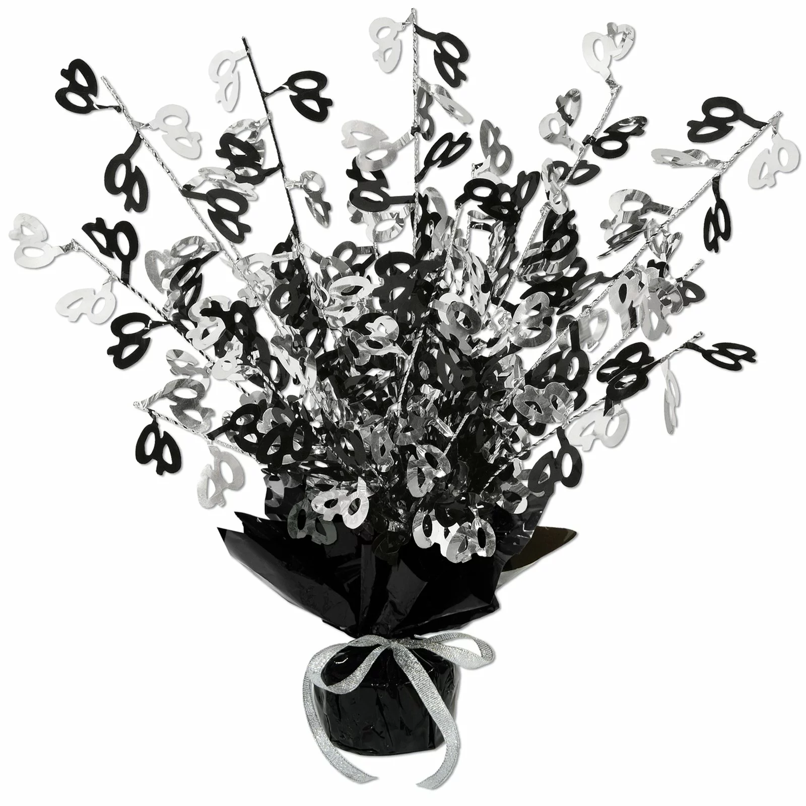 Package contains one (1) foil centerpiece. Measures approximately 15″ high. Has black and silver numbers along with a weighted base. Can be also be used as a balloon weight. Adult assembly required.