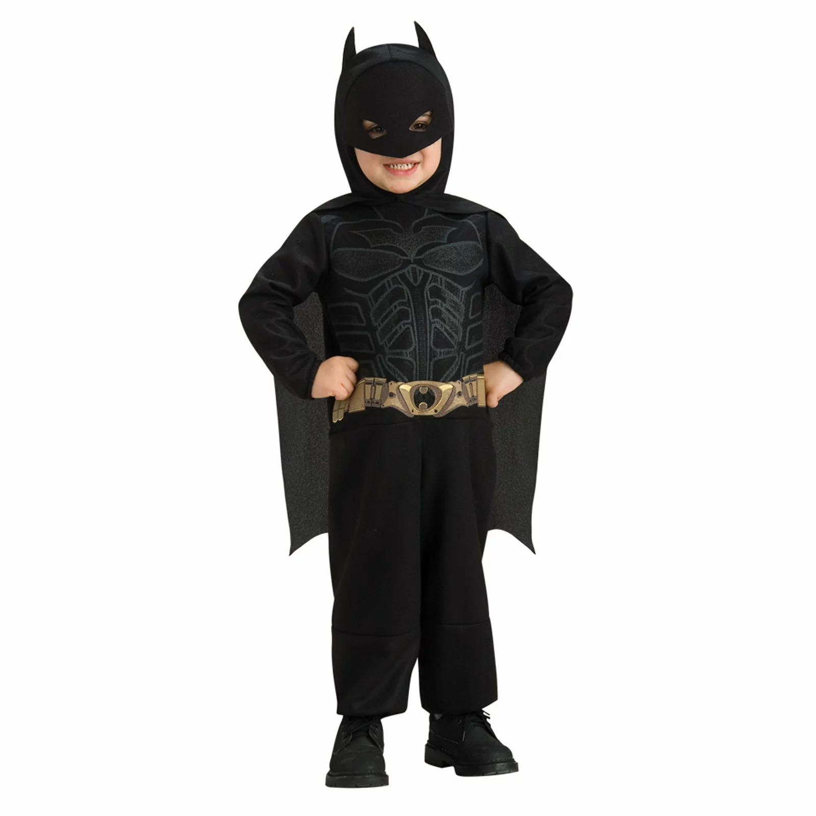 Why not in a comfy 100% polyester little Batman suit? This super-fun costume includes black jumpsuit with armor and utility belt screen-print on torso, a Batman Mask/headpiece and a full length cape. The perfect thing to wear while you wipe the smirk off of the Joker’s face!
