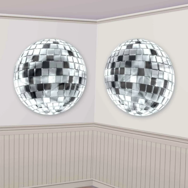 The Disco Ball Add-Ons have 2 Giant metallic Disco Balls that are pre-cut and ready to attach to you walls.