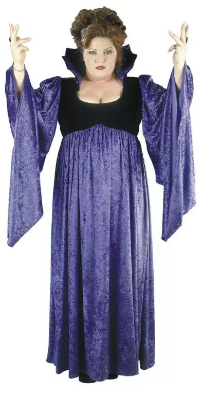 She Rules Over The Evil Court!Costume includes: Full-length faux suede and panne dress with extreme drape sleeves. Repositionable two-tone stand-up color.Available sizes: