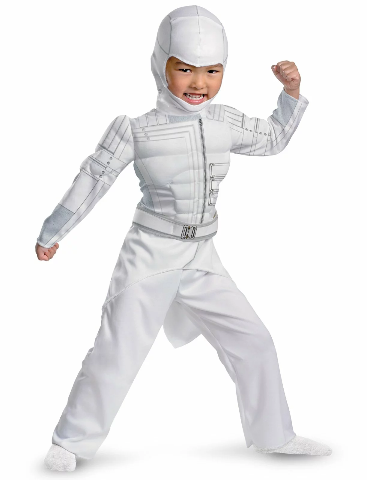The G.I. Joe Retaliation Storm Shadow Muscle Chest Toddler Costume includes a jumpsuit with muscle torso and arms, and a fabric hood. Does not include socks. This is an officially licensed G.I. Joe costume.