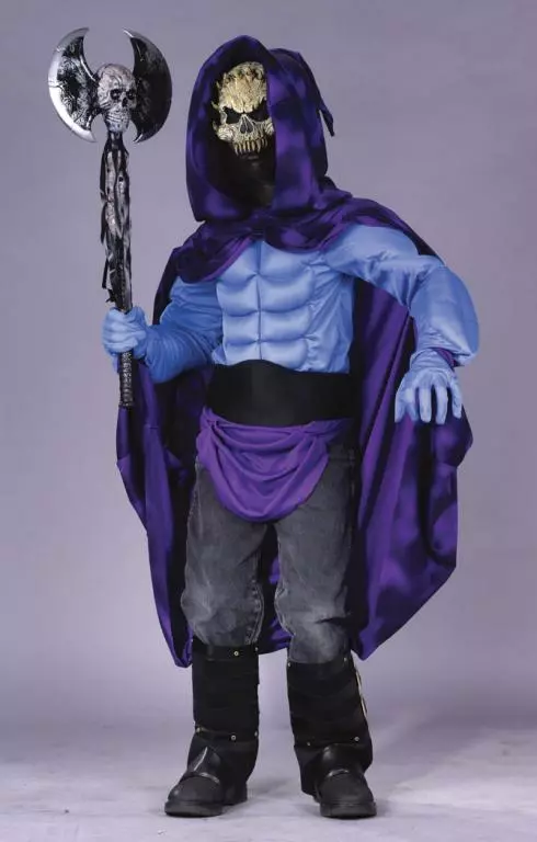 Costume Includes: Muscle shirt, gloves, belt, hooded cape, skeleton mask and boot tops. Available sizes: