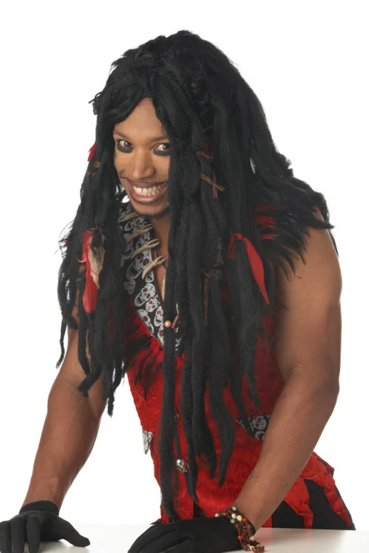 Perform your own rituals this Halloween! The Voodoo Dreads wig features long black dreadlocks with shell accessories. Perfect for a voodoo priest or priestess!