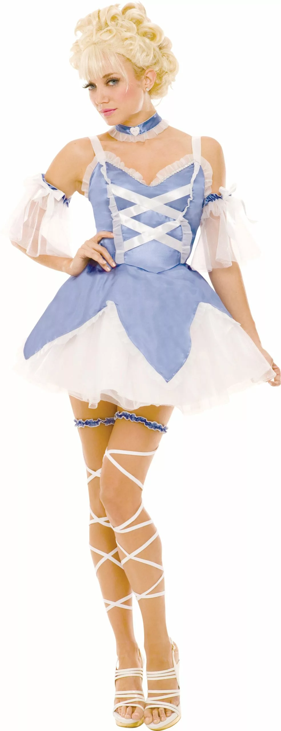 Includes dress, leg ties, choker, and arm covers. Does not include wig or shoes. Available in adult sizes Small, Medium, and Large.